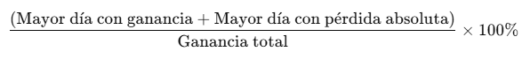 Ningún día de trading puede rebasar el 50% de las ganancias acumuladas en la Fase 1 y la Fase 2.